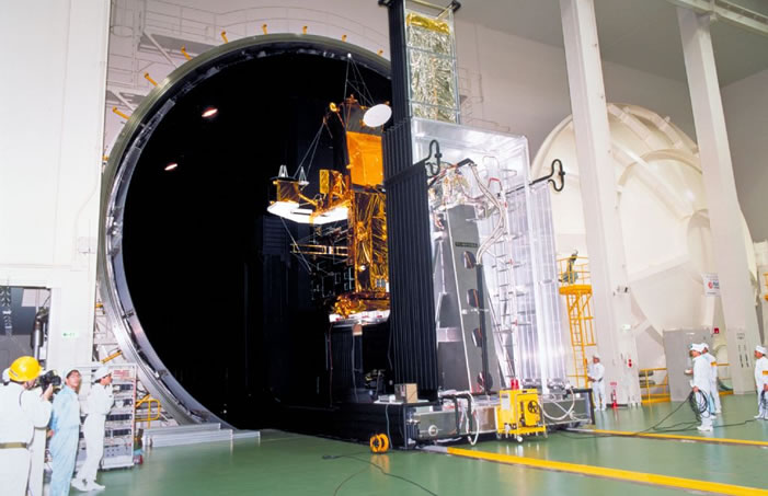 人工衛星が宇宙環境で上手く動くかどうか試験する設備に、当社の真空ポンプが使用されています。宇宙環境は地上とは異なり真空状態です。加えて微小重力、高真空、大きな温度差、宇宙放射線などといった特徴がある過酷な環境です。そのため、人工衛星が丸ごと入る直径13mの大型の設備を用いて、宇宙環境に耐えられるかどうか様々な試験を地上で行っています。